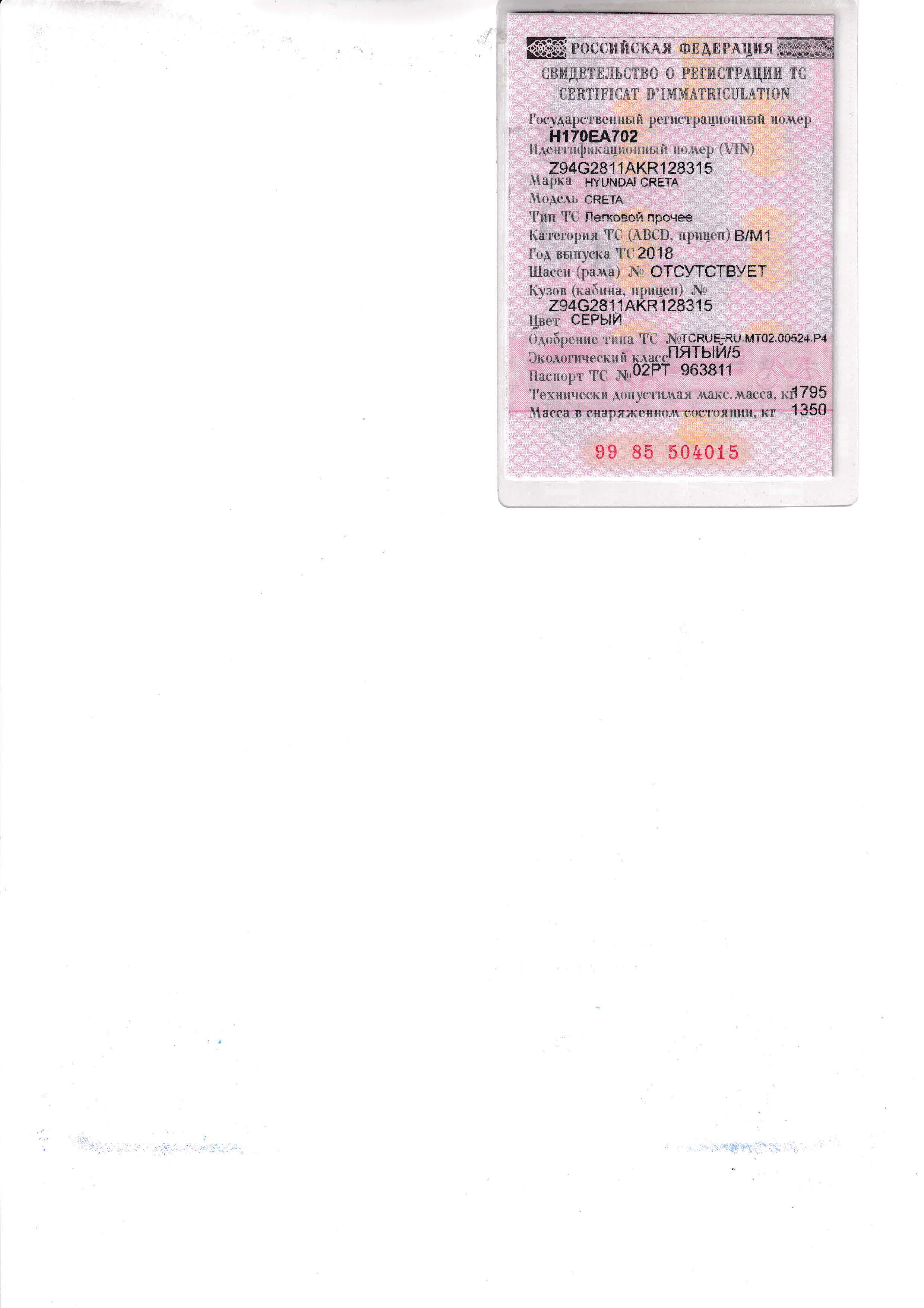 Автомобиль ХYUNDAI CRETA 2018 г.в., г/н Н170ЕА 702, VIN: Z94G2811AKR128315, цвет серый (пробег автомобиля 145 тыс. км., двигатель 1,6, МКПП, передний привод, фотографии автомобиля прикреплены к сообщению в ЕФРСБ и на ЭТП «Тендер Стандарт»).